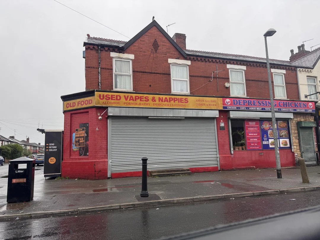 What could it mean? One eagle-eyed Redditor noticed that the bin has been embellished with a ‘Bleakford County Council’ sign, which leads to information on an as-yet-untitled new show by Black Mirror and Nathan Barley creator Charlie Brooker. The new programme, starring Paddy Considine, is being billed as a “profoundly serious” crime thriller. Given the used nappy shop and Depressing Chicken takeaway, we have reason to believe this is not true.