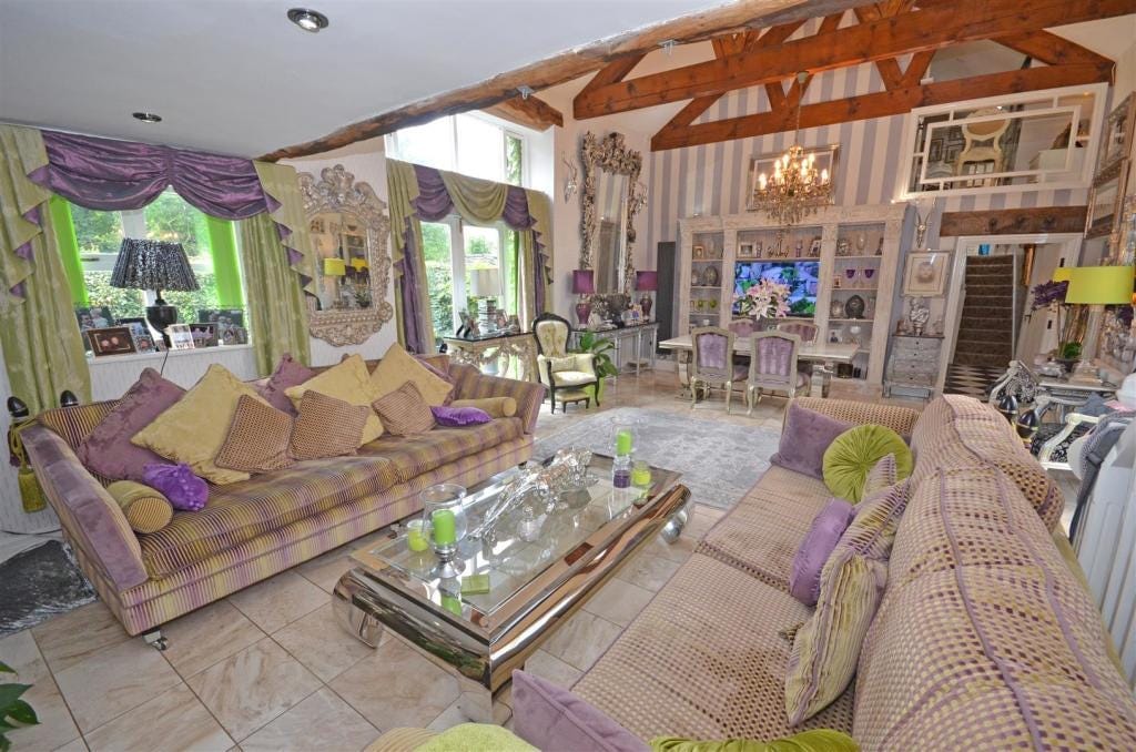 Is this 17th century Grade II listed converted barn in Ashton-under-Lyne the most garish house north of Alderley Edge? It has 4 spacious bedrooms, a huge garden and a swimming pool. It’s on the market for £790,000.