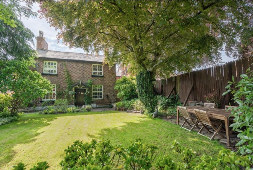 A 4-bed detached Georgian farmhouse is up for sale in the conservation area of Chorlton Green, with original features like an exposed brick fireplace and solid oak beams. It’s on the market for £1.1m.