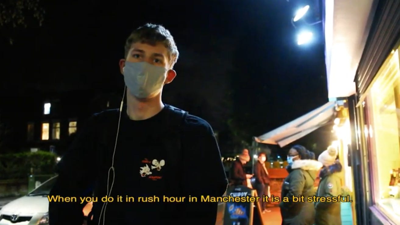 A few months ago we published ‘The Manchester Dream’, a long read about a delivery rider from Sudan called Ahmed, which became one of our most popular stories ever. Because that story focused more on the experience of an immigrant rider, today’s piece looks more closely at the other major demographic among the people who bring food to your door: students and graduates — including Jack himself.
