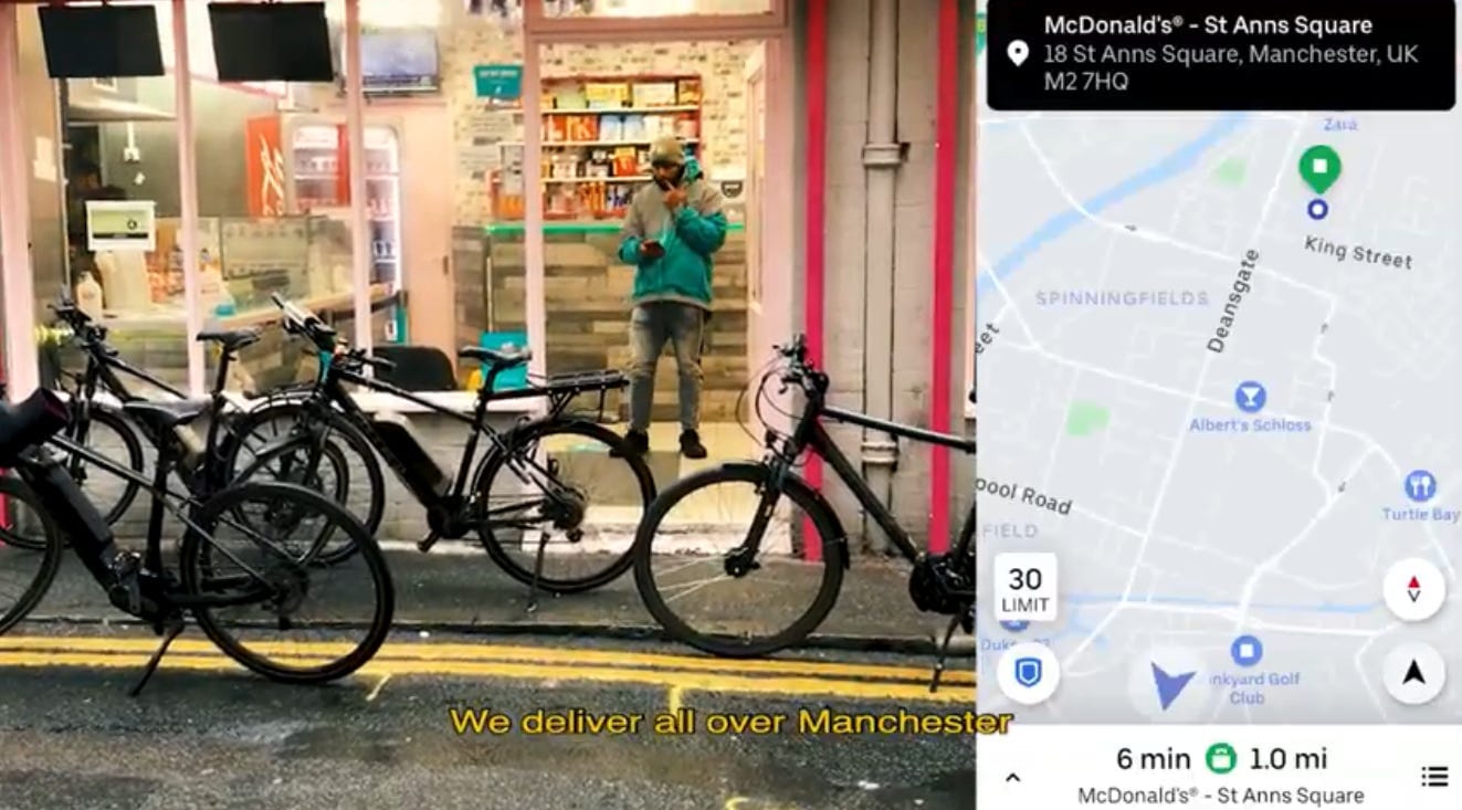 He bought a fake Uber Eats bag off Facebook Marketplace for £40. It had a misspelling, but nobody seemed to notice. So from May 2020 to February of this year, he ferried chicken dinners, artisan pizzas and groceries across Greater Manchester, clocking up 60 to 70 miles in a day.