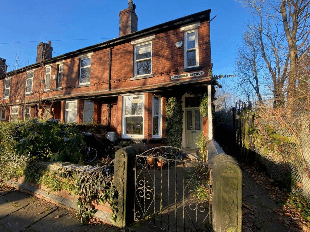 This spacious two-bedroom end of terrace in West Didsbury has views over Cavendish Park, French doors opening to a courtyard and parquet floors. It’s on the market for £450,000.