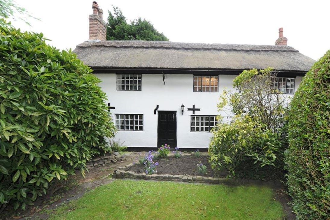This 17th-century 3-bed house in Cadishead has a wealth of original character features, including a thatched roof and ceiling beams. It’s on the market for £400,000.