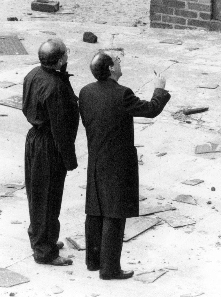 Eventually, I was taken back down the stairs, through the officers in their riot gear and out into the cold, debris-strewn yard. I was asked if I would put on protective clothing. I declined. I wanted to stress that I was an independent observer and not the prisoners’ enemy. It started to snow. With me was a doctor and a priest, but because of danger we were soon taken back into the main entrance and I briefly went back up the stairs to continue my watching. I never saw either the doctor or the priest again.