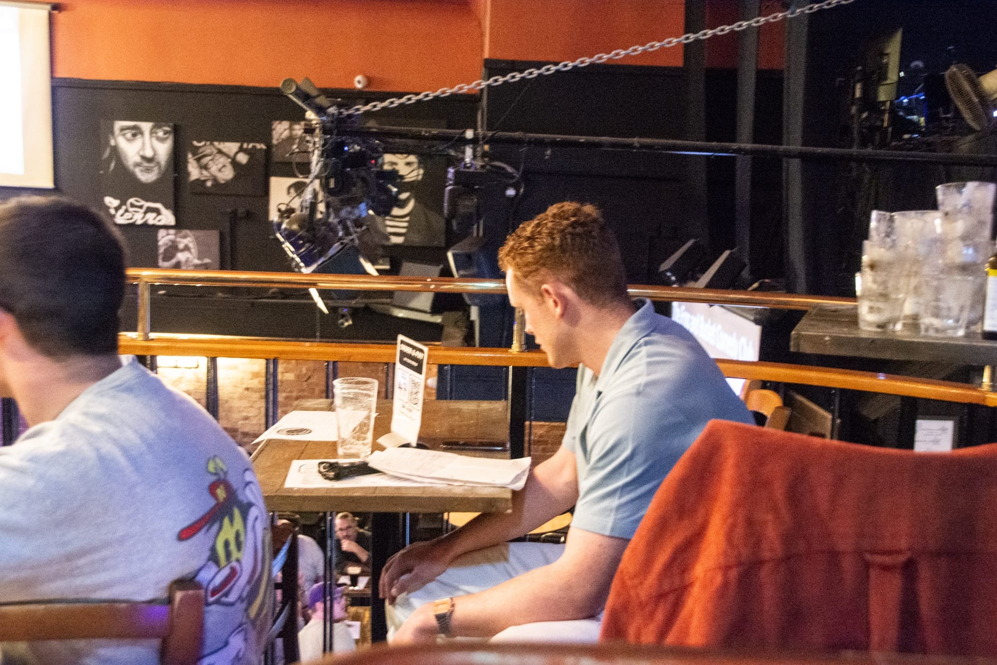 Fast forward to the showcase, I do not feel great. It could be contextual: lights swoop across sticky tabletops, Asteroid by Pearl & Dean plays as a sumptuous voice intones, “ladies and gentlemen, welcome to the Frog and Bucket”. As the audience settle themselves in their seats, I loom above them on the balcony like a hateful bat.