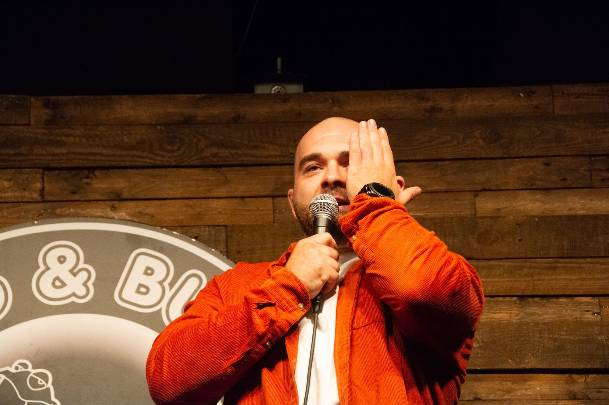 Rewind a few hours: I’m stood in the Frog and Bucket – a comedy club on the border of Ancoats and the Northern Quarter – in a cold sweat. In front of me are four other men: Craig, a burly, bearded salesman; Mo, an entrepreneur who always wears button-down shirts; Dillan, a clinical psychologist with huge, boyish eyes; and Kami, a bespectacled pharmacist who smiles at everything.