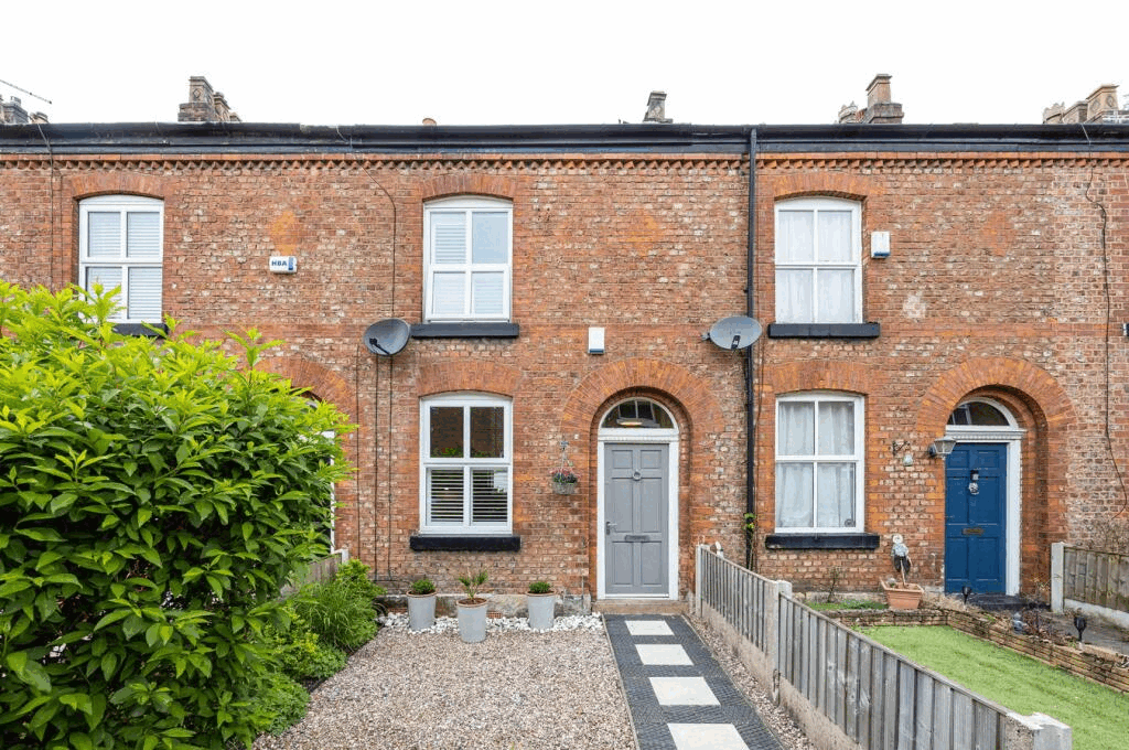 This two-bedroom terrace in Stretford has a cast iron fireplace, a spacious living area and a cute (if rather tiny) yard. It’s on the market for £270,000.