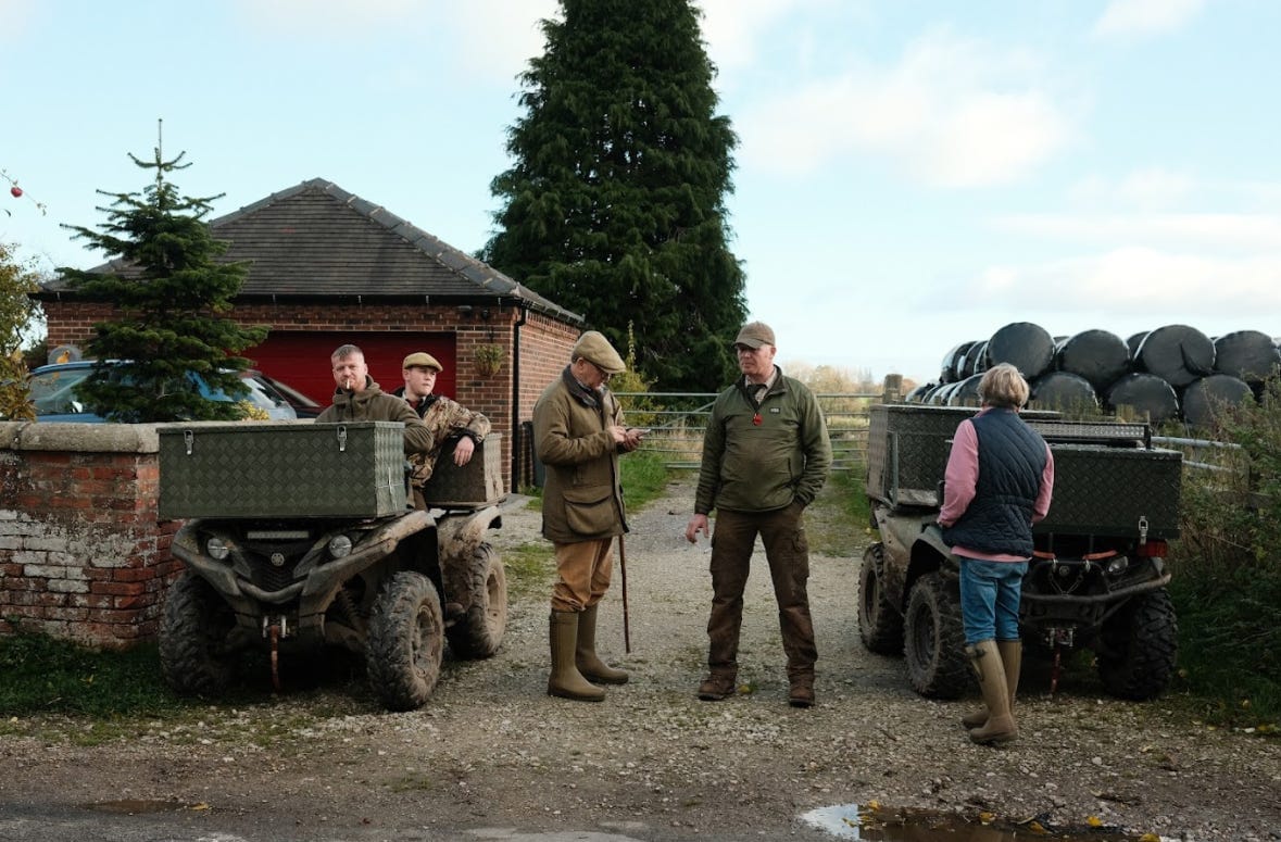 Whereas members of the hunt are under strict instruction not to rise to the presence of saboteurs, the terrier men function as their mouthpiece in the slagging match about to play out. Terrier men are enforcers of sorts who follow the hunt around on quad bikes. Before the hunting ban, they would have been digging out foxes that had gone to ground, but now they supposedly exist to open gates and lay trails. For Meynell and South Staffordshire, the terrier men are Andy Bull and Sam Stanley.