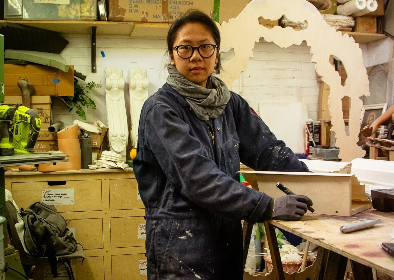 After that, he worked as a freelance - making scenery for shows at the Royal Opera House in London and the Royal Shakespeare Company, where he learned some of the more modern techniques. “Radical” he calls them, with a hint of disdain, although he now borrows from both traditions. Ever since 1997, he’s been building up the company whose warehouse workshop we are standing in. He points to a few green machines near us, one of which is a table saw from the 1950s. “A lot of old machinery is still the best machinery,” he says.
