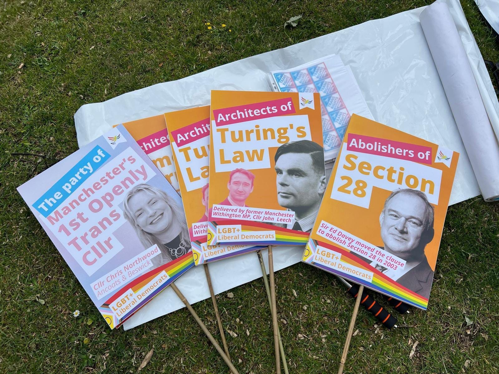 Chris Northwood, a 37-year-old software engineer and a Liberal Democrat councillor for Ancoats and Beswick, arrives at the parade to join her party colleagues. She finds them standing in the middle of the road, a vast stretch of concrete and lazily parked cars, holding signs saying the Lib Dems are “the party of Manchester’s 1st Openly Trans Cllr” emblazoned with a photo of her face.