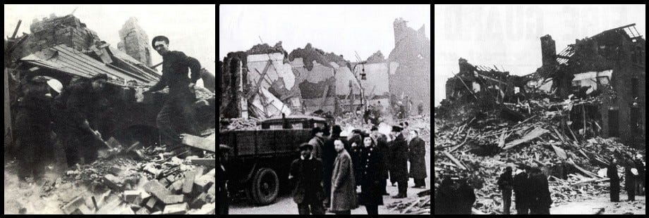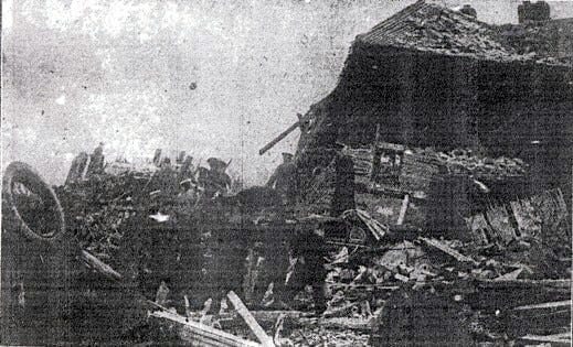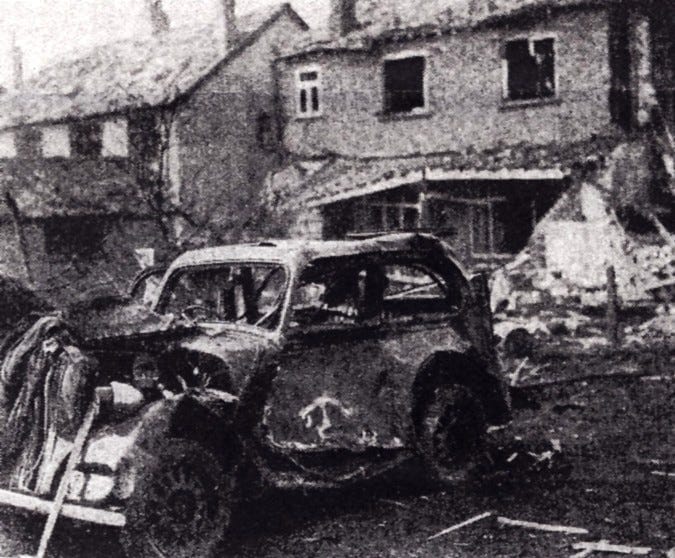 Thirty minutes later, 27 people were killed when another V-1 crashed onto the south side of Abbey Hills Road in Oldham. “The roof blew off our house,” one witness recalled. “My dad heard the siren and threw me under a table.” In Tottington, another seven were killed.