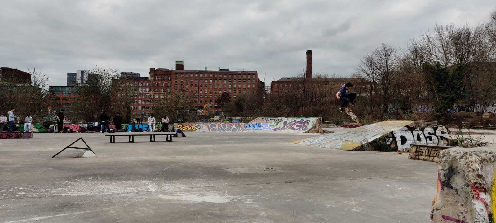 So when the street spots were skate-stopped, where did Manchester’s passionate skateboarders go? Projekts MCR, the caged-up indoor park beneath the Mancunian Way flyover, is a popular spot, but it costs a tenner a visit. Same with Graystone indoor skate park in Salford, and anyway, that’s in Salford. The nearest free skate park to the city centre is Hulme Skate Park, which was by all accounts designed appallingly and without the consultation of skaters. Platt Fields skate park was rotting so badly by the time it was demolished a few weeks ago that no one was particularly upset.