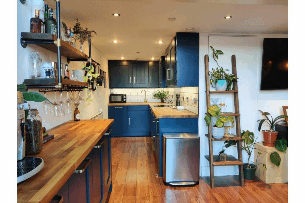 A balcony indoors? It’s like living at the Trafford Centre! This two-beder in the city centre was built for all year round al fresco dining — it costs £300,000.