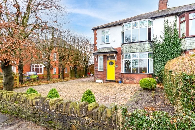 This house just north of Bolton has Art Deco stained-glass windows and sweeping views of the Lancashire countryside. On sale for £375,000.