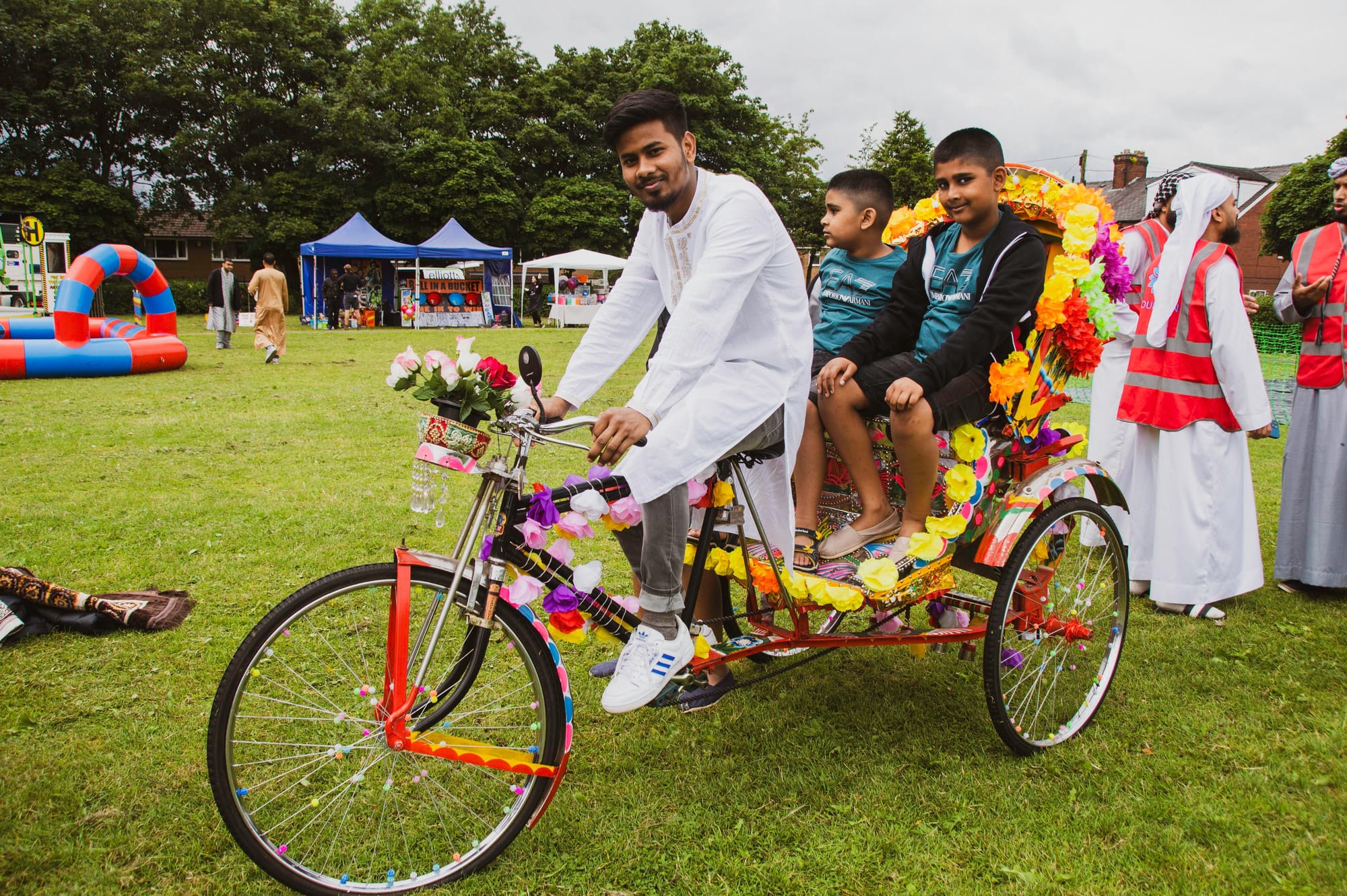Hamid Ali started “Eid in the Park” in Oldham’s Berries Field Park in memory of his mother, who passed away last year. Her last wish was that Oldham’s communities would start to come together, so he set the event up in her honour. The first gathering of its kind organised by the Bangladeshi community in this town, it welcomes everyone — Muslim or not — to celebrate Eid al-Adha, one of the two Eids observed by Muslims (the other being Eid al-Fitr).
