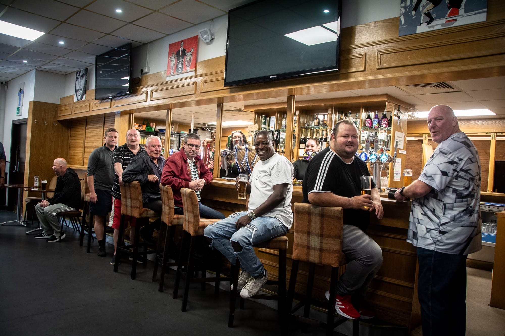 Jackie, the landlady at the Railway Club, comes from a family who are particularly invested in the pageantry of mid-20th century patriotism. Her mum was a big royalist and the whole family get dressed up in red, white and blue every Whit Monday. Her aunt Jeanette, who flies a Union Jack in her garden in north Manchester, has a cape that comes out on special occasions. It bears a stitched message on the back: