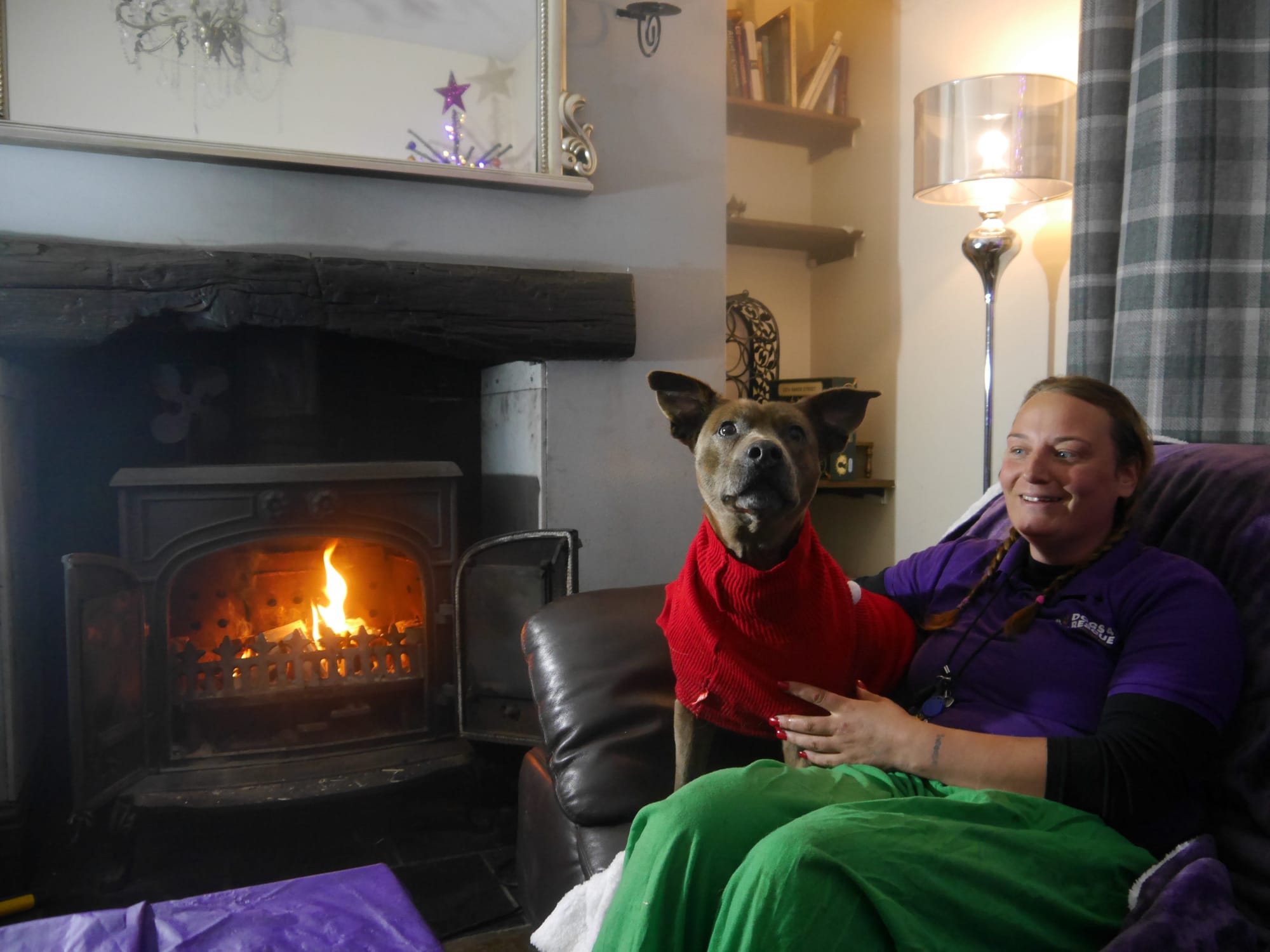 She found Lucky, a skeletal, sweet Staffie with olive eyes, tied to a rope outside her neighbour’s house. Her owner suffered from mental health issues and was using her to breed, and selling the puppies on for £20 each. Emma started to walk Lucky every day, and spent her annual leave sitting with her in the garden and playing. At work, she spent every day thinking about Lucky, and wondering if she could save her. The daily walks became a solace to her when she was battling through a miserable job.