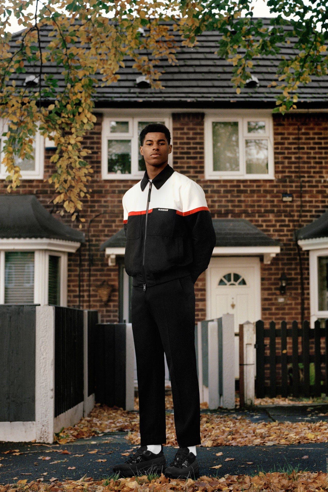 Rashford poses outside his old house in Wythenshawe for GQ magazine.