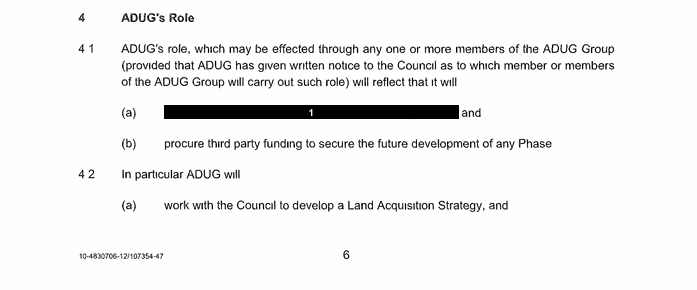 Passages from the agreement, showing that the council and ADUJ developed a "Land Acquisition Strategy".