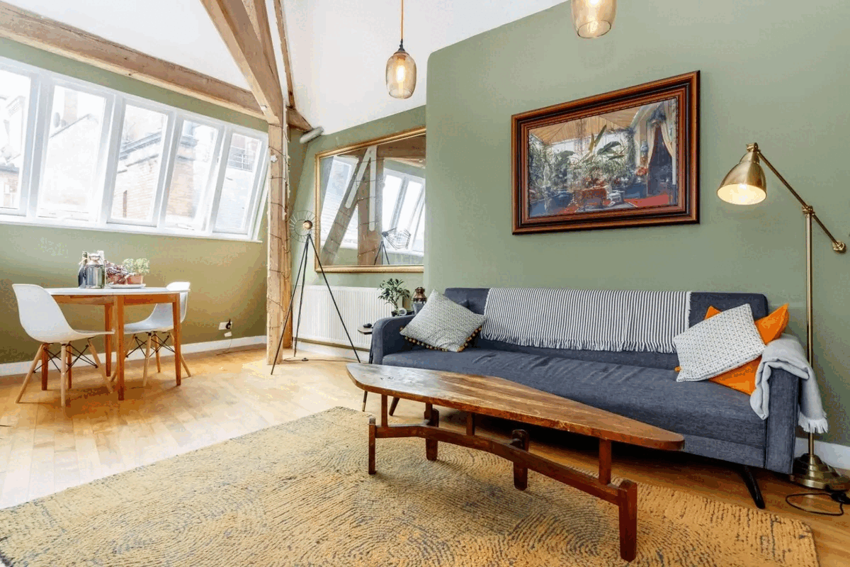 Tasteful interior design and a bedroom just about big enough to fit the bed at this mezzanine apartment near the Northern Quarter. It’s listed for £205,000.