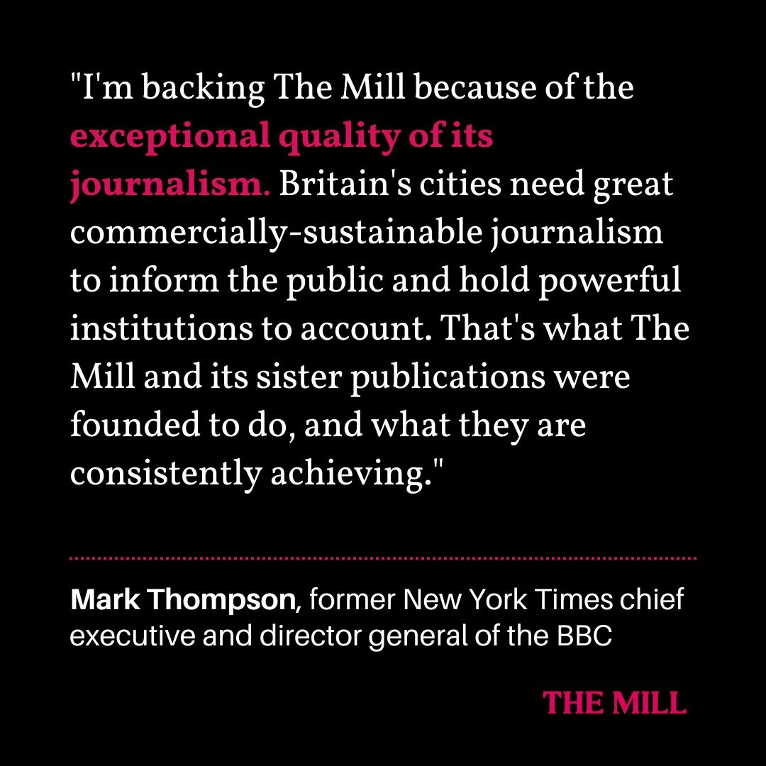 Dear Millers, it’s been a very significant few months for us at Mill HQ. In August, we announced that we had secured investment from backers like (the former BBC director general and New York Times CEO) Mark Thompson and Dame Diane Coyle, one of the country’s top economists; then in September we had our record month of subscriber growth, pushing us past 2,500 members; and last week, our new sister title The Dispatch launched in Birmingham, spreading the journalistic model we’ve pioneered here in Manchester to another part of the country where it is much needed.