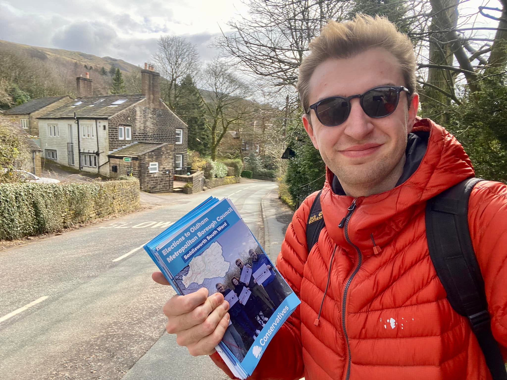 Woodvine says he is focused on bread and butter issues, like what he sees as the council’s overspending — he cites the decision to buy Spindles shopping centre — and its decision to let the Civic Centre decline to the point where it requires eye-wateringly expensive renovation. He thinks there’s been too much focus on regenerating Oldham town centre while ignoring the outer boroughs, which has disenfranchised voters in the outlying towns and villages. He doesn’t think the Conservatives will win a majority this election but is confident they could pick up a few more seats, potentially robbing Labour of control.