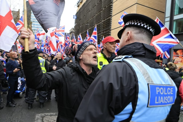 Corbyn’s Your Party and the Greens came together against what he described as the “threat” of the far-right. One counter protestor, Leanne, 29, told The Mill she didn’t feel like she could “stand by” while “fascists were in [her] city”. Toby, 33, said the march was “disgusting” and that those taking part “will never represent what Manchester is about”. Over on the Britain First side, many people were at pains to tell The Mill that they’re “not racists”, but insisted that the UK is facing an “Islamic invasion”. Mark, in his 50s, said he wants to revert to feeling like he lives in a “Christian country.” Hugo, 37, feels similarly, though he thinks both left and right-leaning groups largely “want the same thing.” He told The Mill he’s only against illegal immigration, and knows that crime is committed by people across racial and cultural lines. Not everyone was quite so nuanced though. Other scenes included a group of breakaway Britain First protestors shouting at a white British woman to “go back to where [she] came from” as she tried to defend an Asian man from verbal abuse.