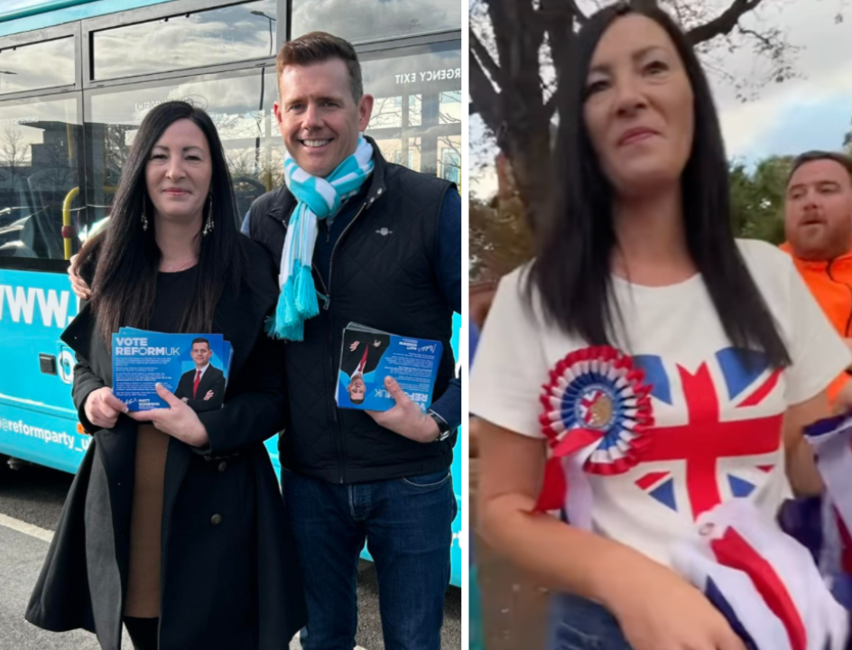 Then there’s Kelly Cooling. Cooling has been photographed on the campaign trail in recent days with Matt Goodwin, but as recently as last summer she was throwing her support behind another party: Britain First.
