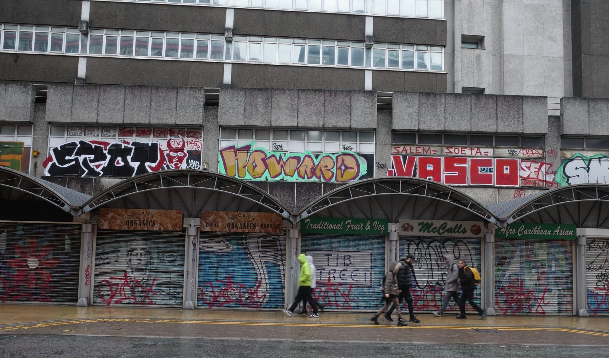 Of course, none of this actually answers the question “who is Howard?”. On Monday morning I walk to Piccadilly Gardens, but the weather and the markets have displaced the area’s homeless. One man sets up camp by a dustbin on Market Street — rain-soaked cardboard on the rain-soaked ground. His name is Glen. He’s not heard of a Howard, but he promises to let me know if he meets him. Until then, Howard’s legacy lingers in Ben’s tags, and in his art — he tells me that when he starts painting again, he’s going to do it under Howard’s name. “I think,” he says. “I don’t really know. Or maybe just under ‘Benjamin Daye’.”