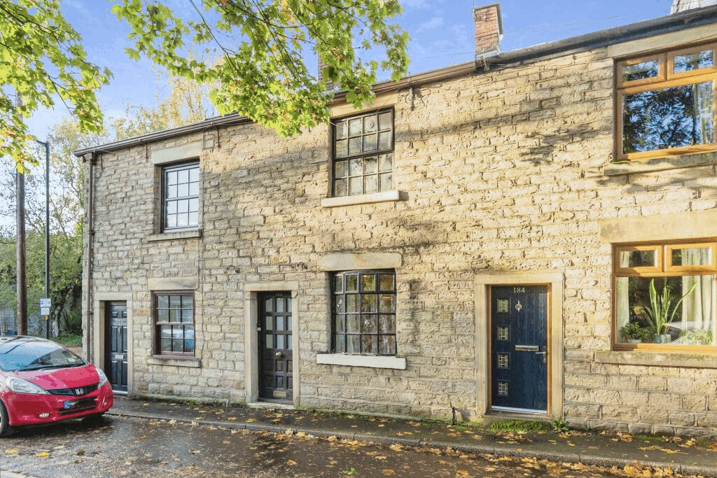 This bright and spacious two-bedroom terrace is near the picturesque Etherow Country Park in Stockport. It’s on the market for £260,000.