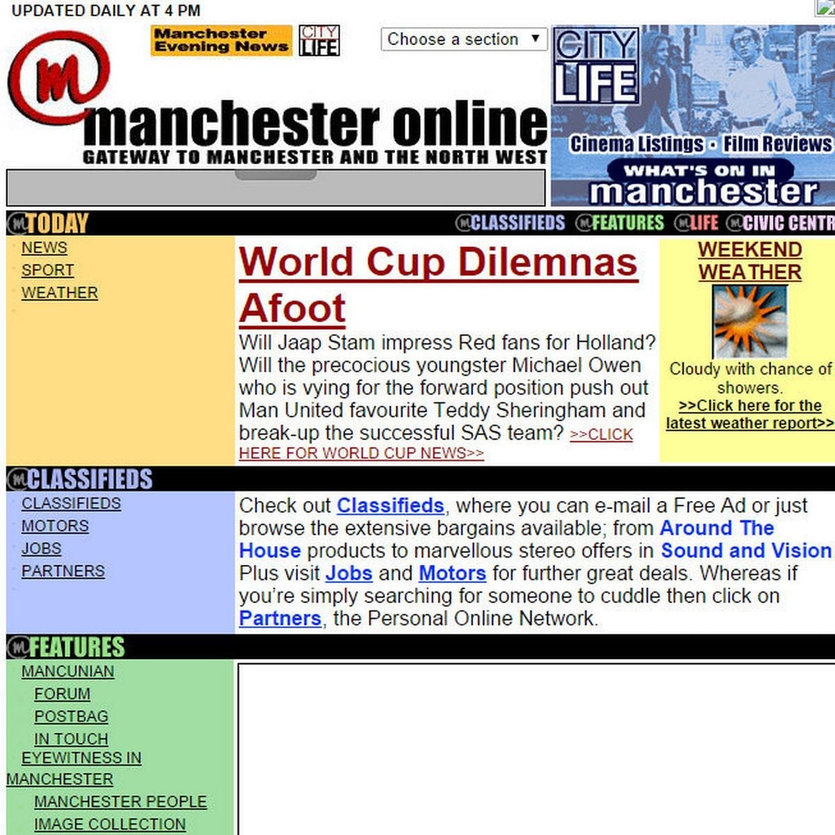 The MEN’s website in 1998, then called Manchester Online. Michael Owen was still a precocious youngster and the paper still had extensive classified ads.