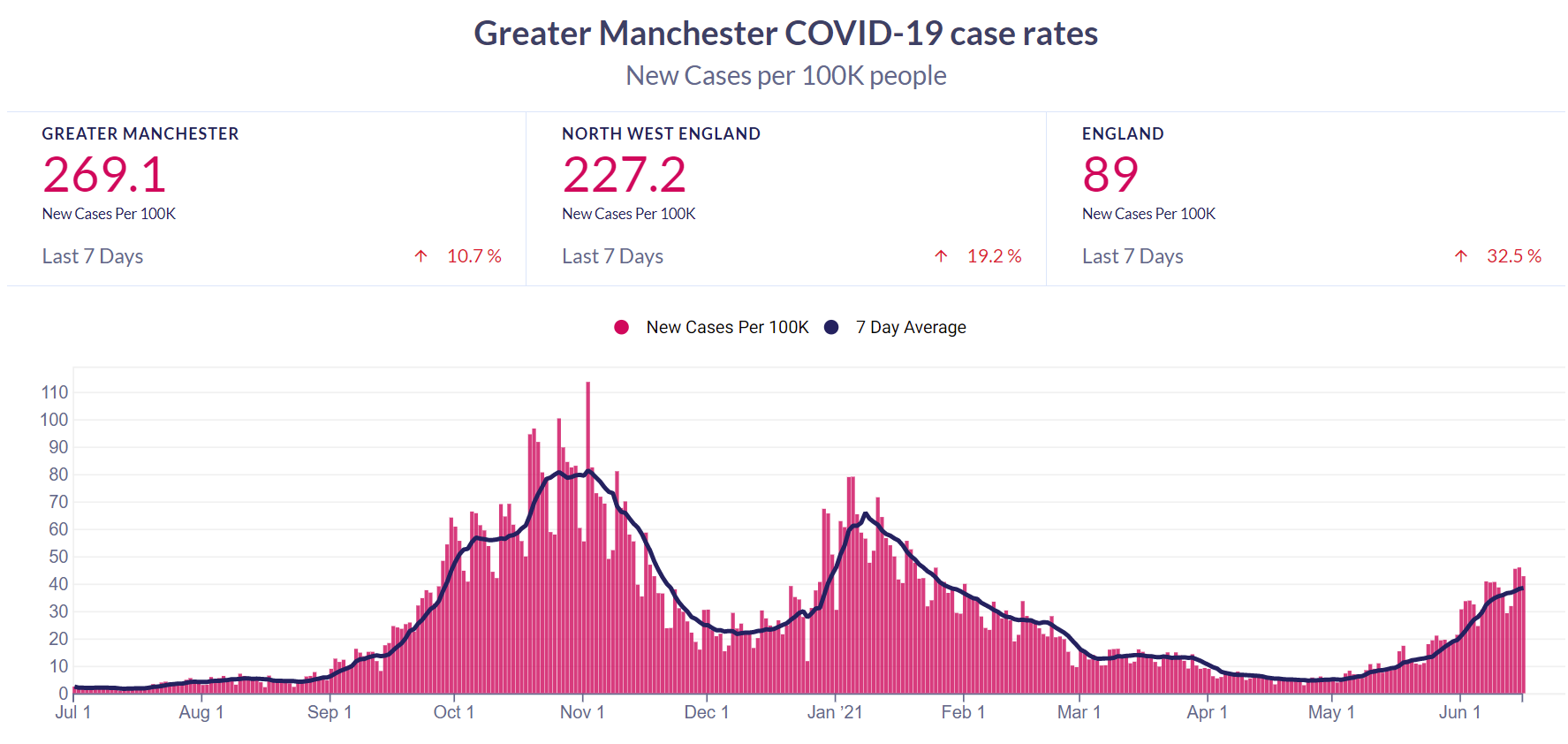 Go deeper: Recently we sent members an in-depth analysis of how this wave of the virus in Greater Manchester compares to past waves in terms of cases and hospitalisations. Read it here.