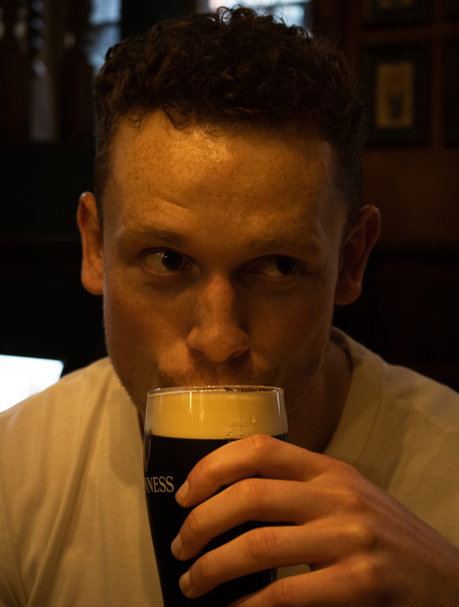 11:05 am at Mulligans of Deansgate, Manchester’s oldest Irish pub. Doors opened five minutes ago and every seat is taken. There’s 12 pints of Guinness on the bar — half full and resting — waiting to be topped up, served, cheersed, and drained. The bottom of each glass placed on the bar makes a satisfying billiard-ball pop. And it doesn’t stop. Did I mention it’s Saint Patrick’s Day?