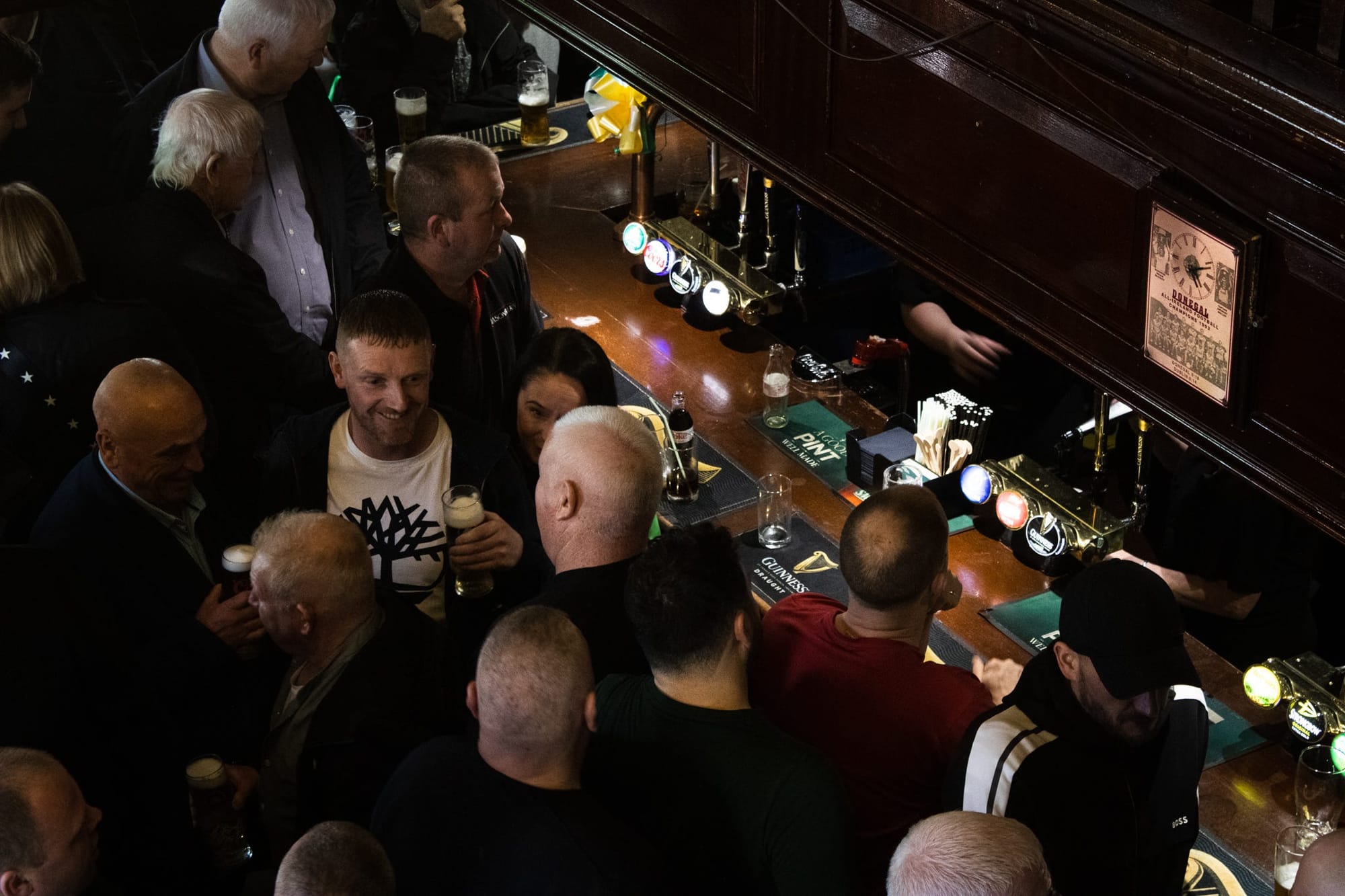 Joe, from Manchester, and Daryll, from Fermanagh, have been firm friends for many decades. They grew up together, and always get together on Saint Patrick’s. “This is like his Champions League final,” Joe says of Daryll. They meet early to have an Irish fry (that’s basically a full English but with black pudding, white pudding and soda bread) and a Guinness at the Koffee Pot, then they drink.