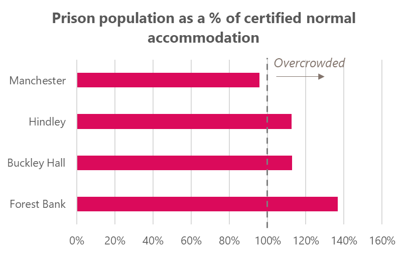 Bottom line: In Greater Manchester’s prisons, overcrowding is just one issue, along with drugs and violence. Forest Bank is described by former inmates as a “prisoner’s prison”; Hindley was recently subjected to a “tsunami of drugs” according to the chief inspector of prisons. And, Strangeways, according to insiders, isn’t struggling with high prisoner intake as much as prisoners not being rehabilitated enough to ever leave. As well as looking at how to deal with the numbers of people we’re sending into our prisons, we need much more focus on the prisons we’re sending them into.