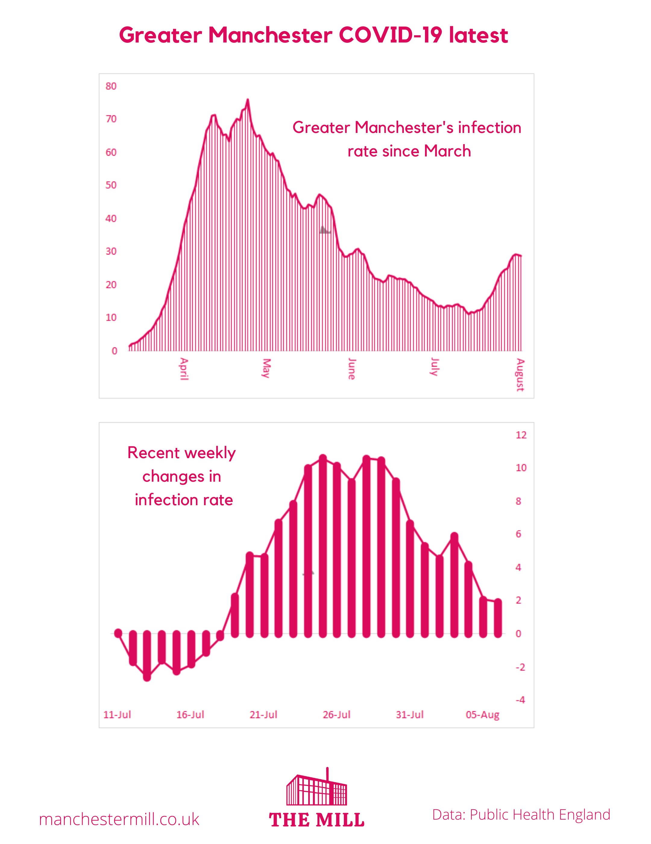 - Greater Manchester’s infection rate is 31, very marginally up from 29 a week before. If Oldham wasn’t included, the rate would have fallen.