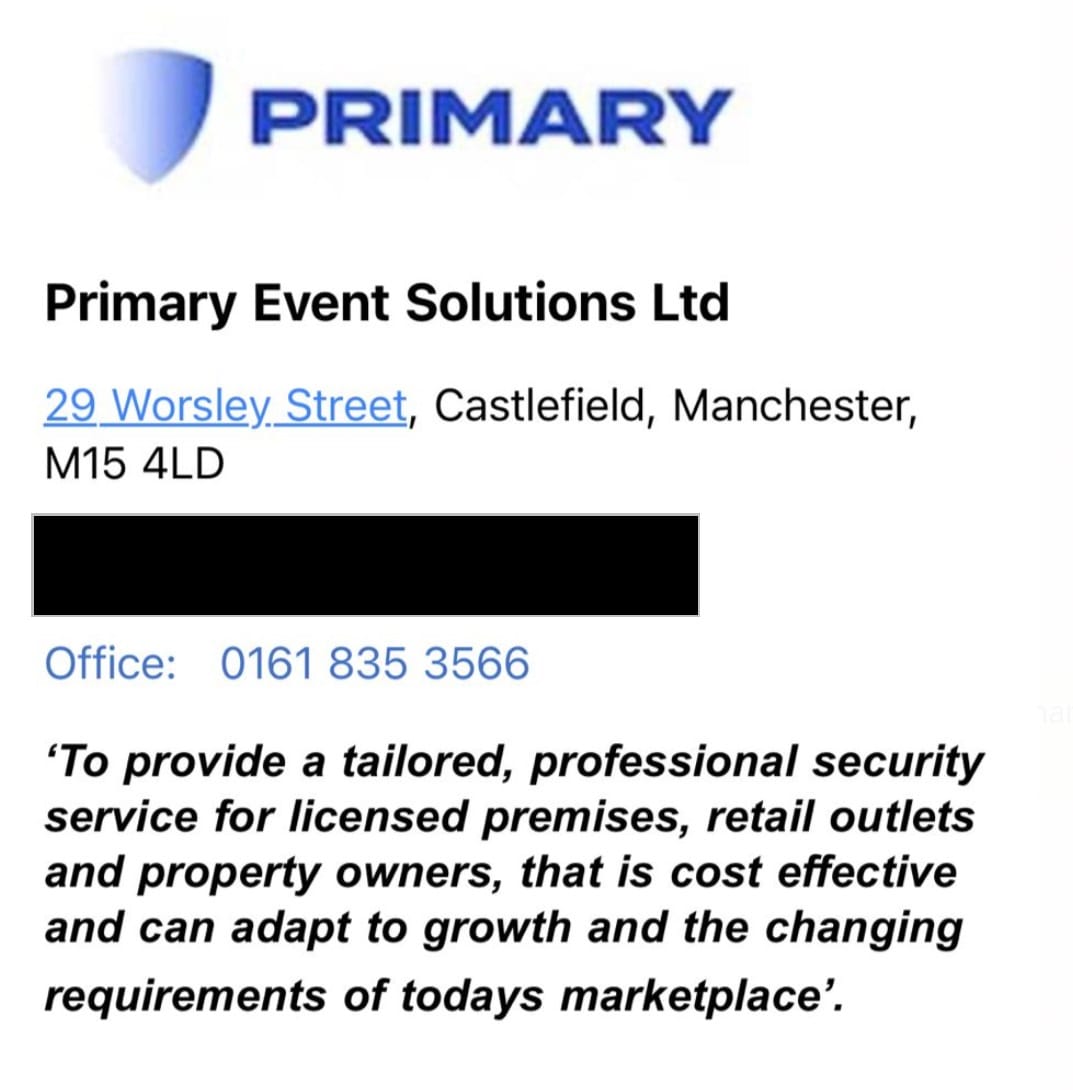 Another former staff member, who again did not want to be named, remembers when the company changed from Primary Security to Primary Events. “They said that they are concentrating more on event security rather than nightclubs and doors,” the person said. This former staff member hasn’t spoken to Mark Turnbull, the company’s former director and the original source for our reporting, since he left the firm, and says the two men didn’t see eye-to-eye. But he told The Mill: