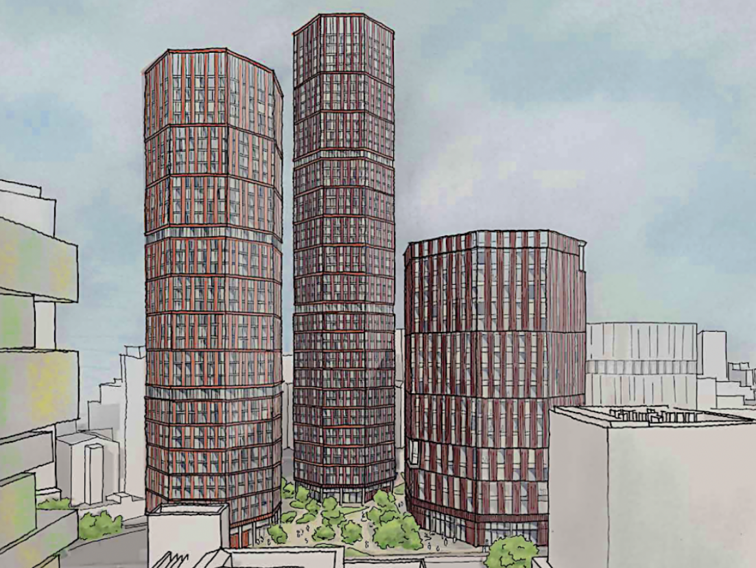 🏗️ Albert Bridge House, the vacant 1950s former tax office near Bridge Street and the River Irwell, built in a Brutalist style, is set to be demolished by developer Oval Real Estate. Initial plans, drawn up in 2022, consisted of developing a 45-storey skyscraper on the land with 367 homes and 350,000 sq ft of office space. The plans have now been revised to two residential towers rising to 37 and 49 storeys and a 17-storey office block, “to better align with current market needs and community priorities”, according to the developer.