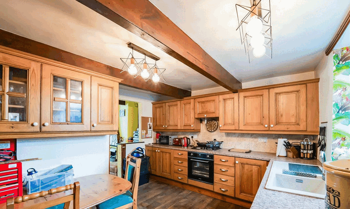 This two-bedroom terrace in Bury is set back on a private cobbled street and has a large rear garden. £260,000.