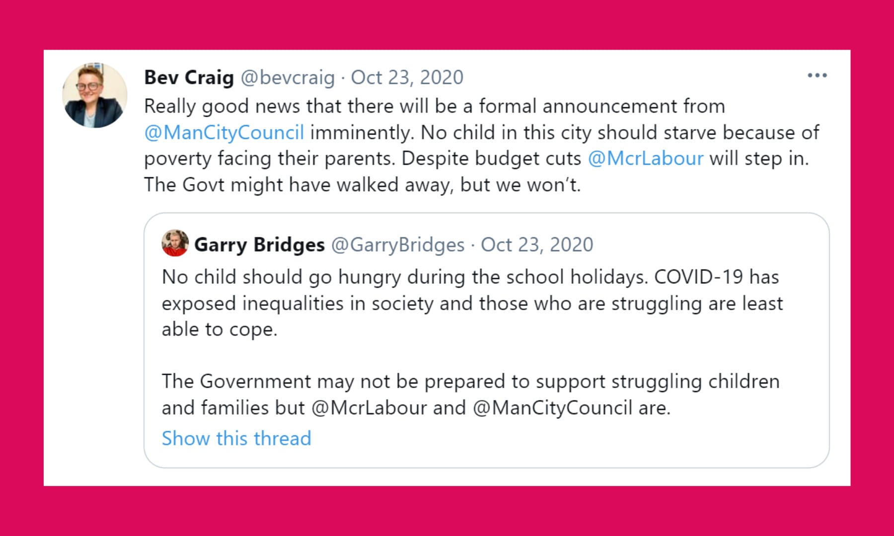 What she and her colleagues apparently had not seen was the food parcel their own council was preparing to send to Manchester’s most hard-pressed families.