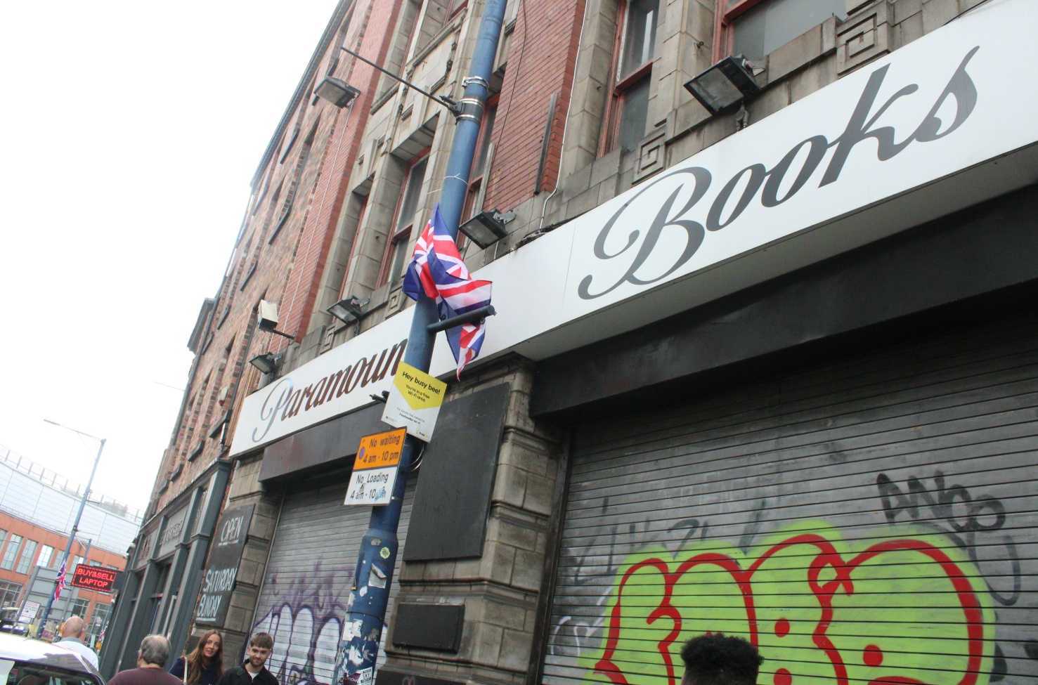 I’m outside Marks & Spencer on Market Street, standing beneath a newly-hoisted Union Jack in a moment of quiet reflection. For a few days, I’ve been trying to get hold of the people who hung this flag and the others that have sprung up around the city centre. A man approaches me, and we look up at the flag together. He describes its presence as an act of “quiet revolution” that reminds him of the peaceful protest of Mahatma Gandhi, a parallel that hadn’t yet occurred to me.