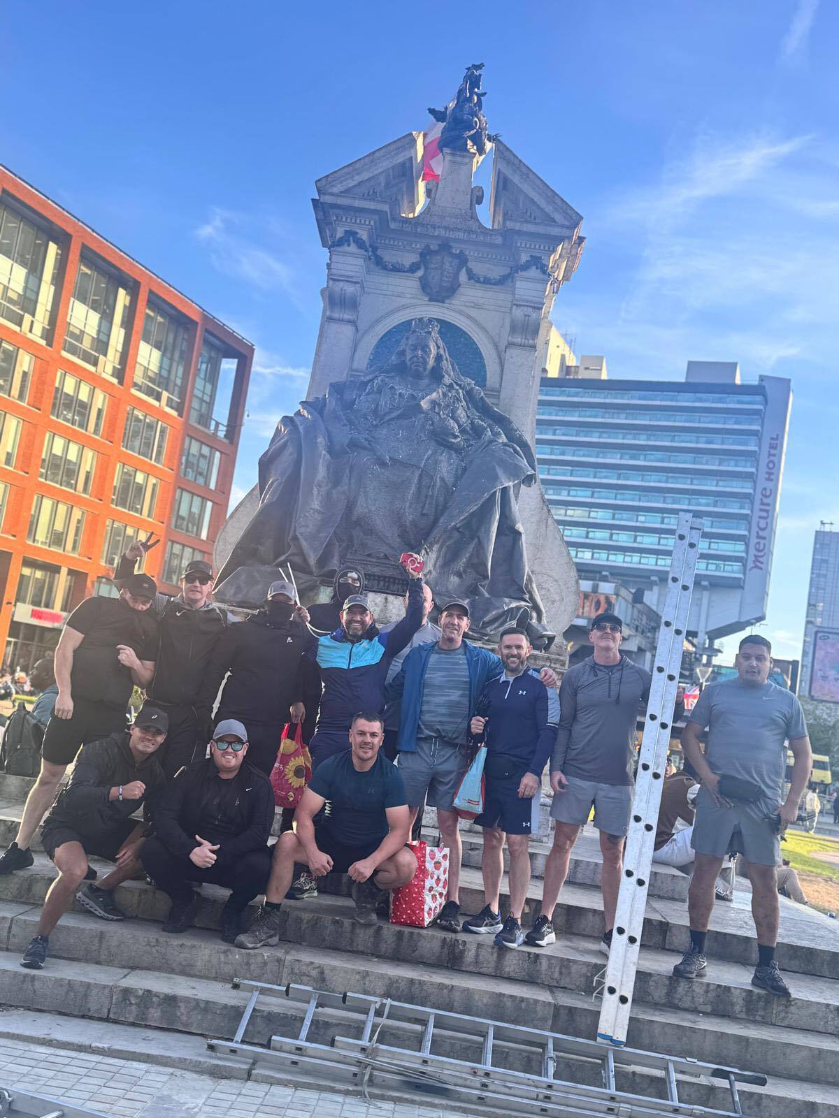 On Wednesday evening at around 6pm, a group of about a dozen men and at least one woman made their way into the city centre, armed with ladders and flags, some of them wearing balaclavas. They were there to participate in a nationwide project which has seen roundabouts in Wigan and residential streets in Blackley festooned in British colours.