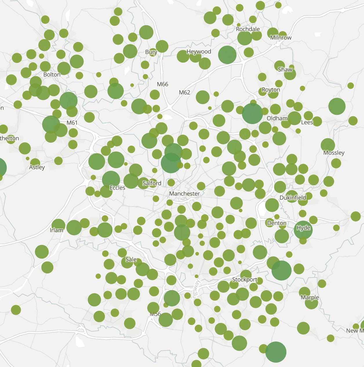 The Mill take: What jumps out of the data is how unevenly the virus has taken lives in Greater Manchester. Naturally, most of the media attention has focused on the areas with high fatalities, which makes sense in terms of covering the terrible human suffering. But it’s worth zooming out a bit: