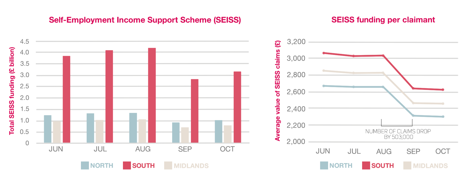 - Data point: Between June and October, self-employed workers in the South received around £12bn more in support, with each claimant receiving an average of £357 more.