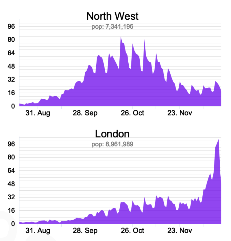 - The latest data for the North West show a gently rising picture - see the chart above from the great @UKCovid19Stats Twitter account.