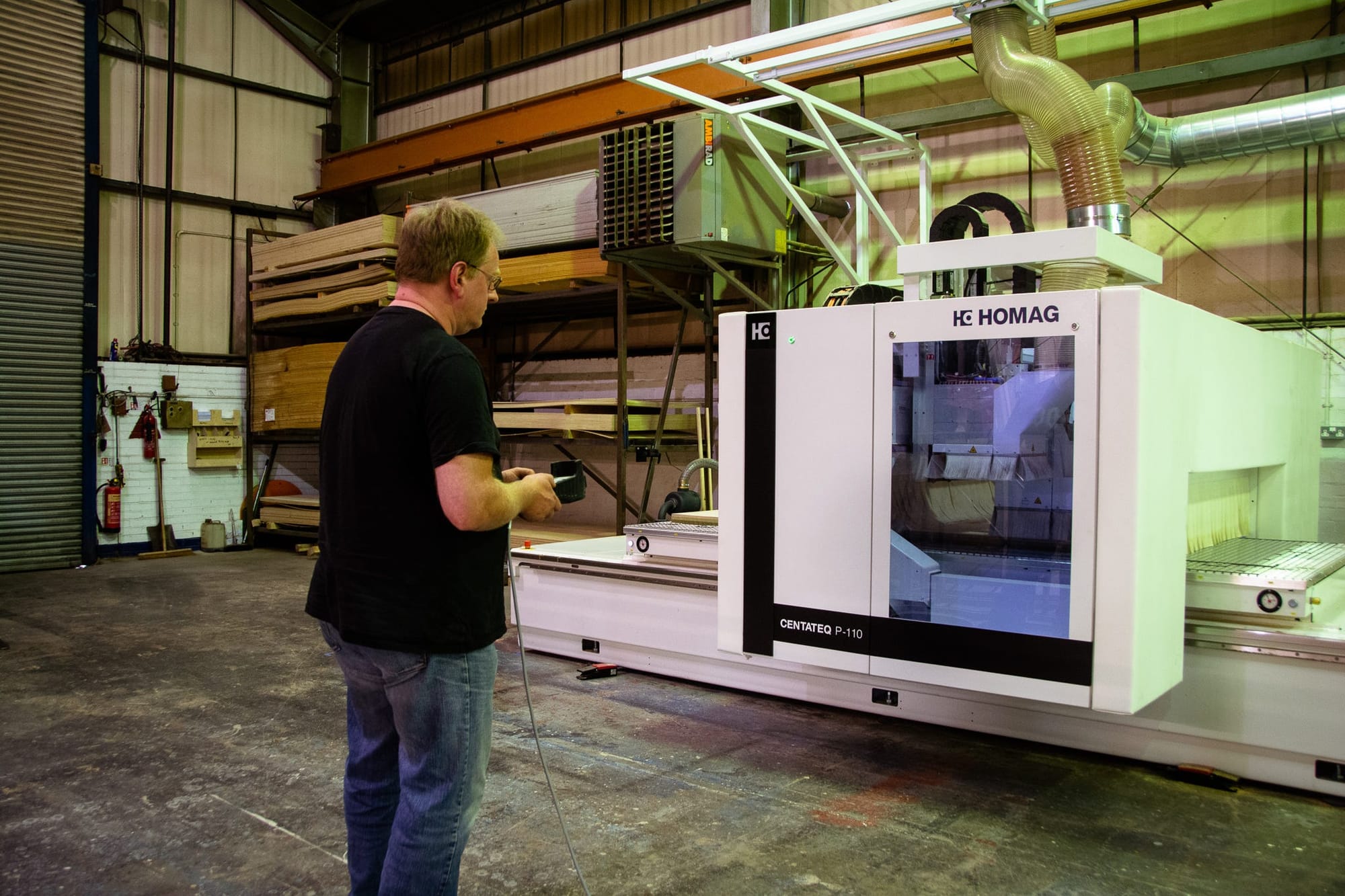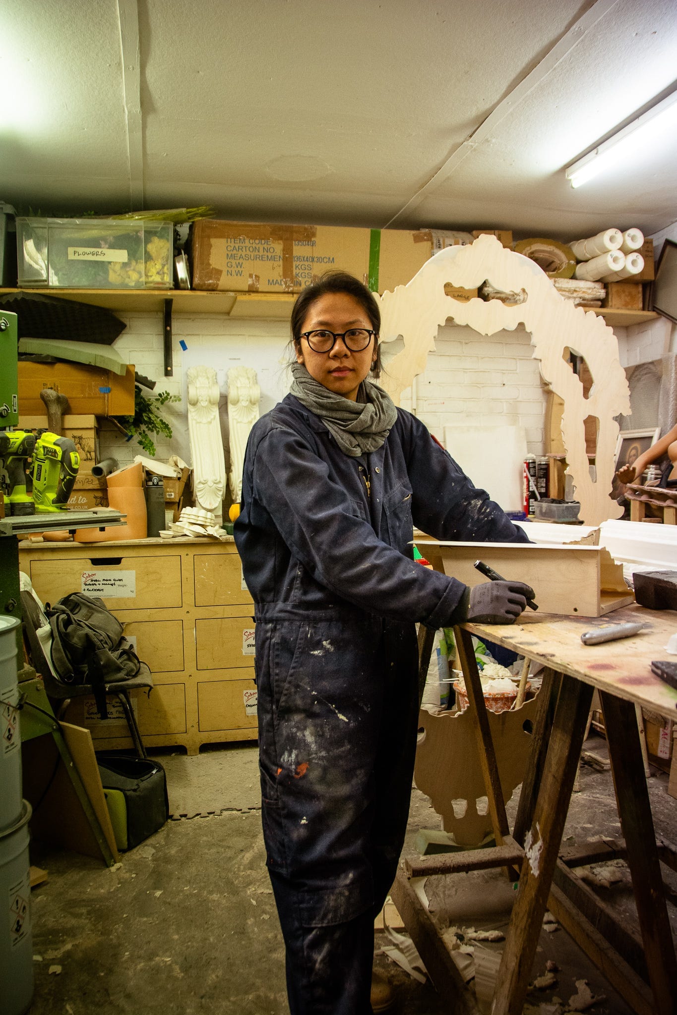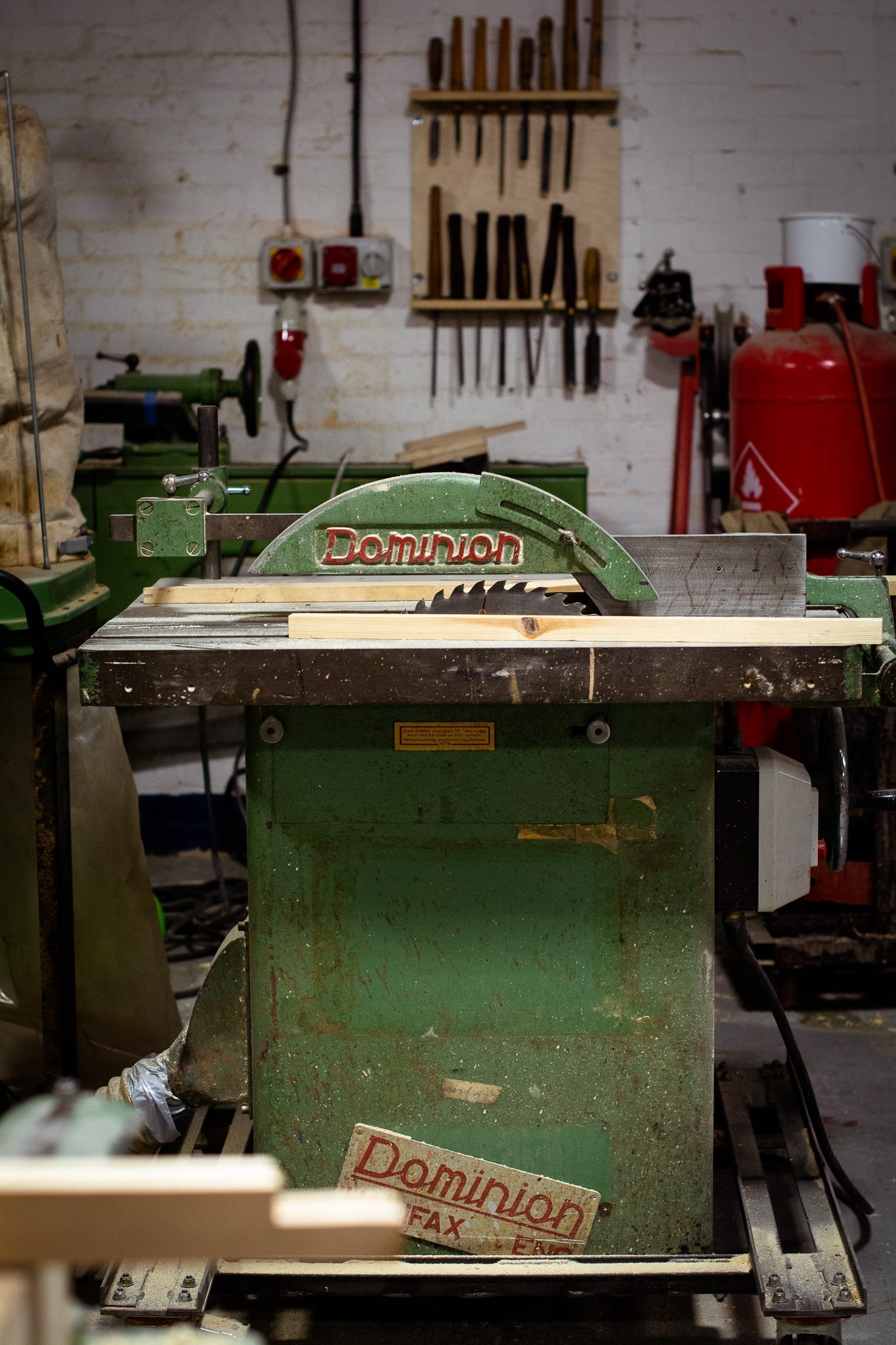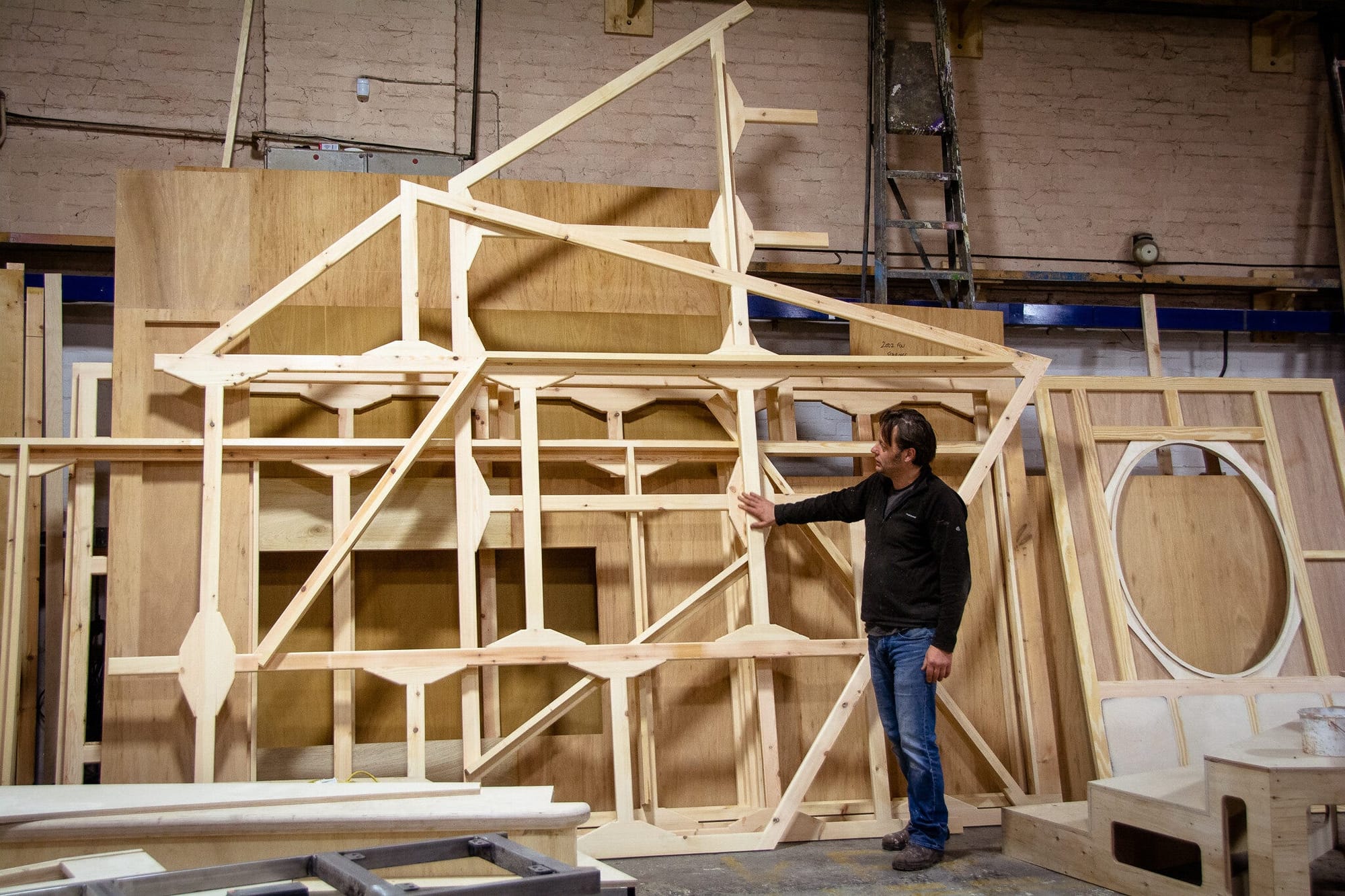 After that, he worked as a freelance - making scenery for shows at the Royal Opera House in London and the Royal Shakespeare Company, where he learned some of the more modern techniques. “Radical” he calls them, with a hint of disdain, although he now borrows from both traditions. Ever since 1997, he’s been building up the company whose warehouse workshop we are standing in. He points to a few green machines near us, one of which is a table saw from the 1950s. “A lot of old machinery is still the best machinery,” he says.