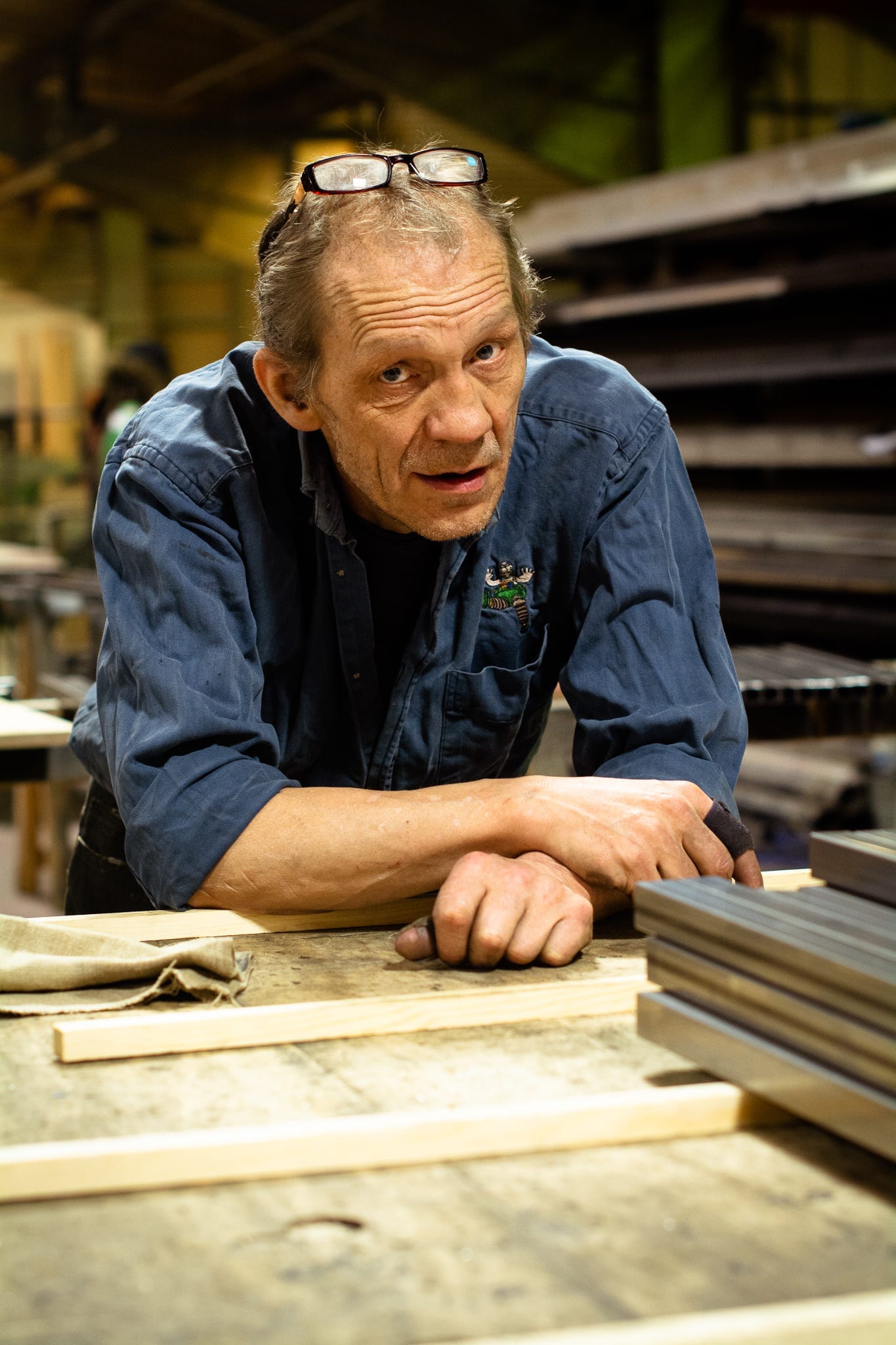 Graham was born in Oldham, 50 years ago. His dad was a skilled bodywork painter and one of his jobs was painting the buses. His mum was creative too. When he was 16 he left school with no qualifications and started his apprenticeship in theatre carpentry at the Coliseum. He worked under master carpenters there, who taught him the old school ways of building scenery. Proper joinery. Old fashioned tools. Traditional fabrics like flax rather than canvas. Animal glue - which smells disgusting and hardens into a tough resin.