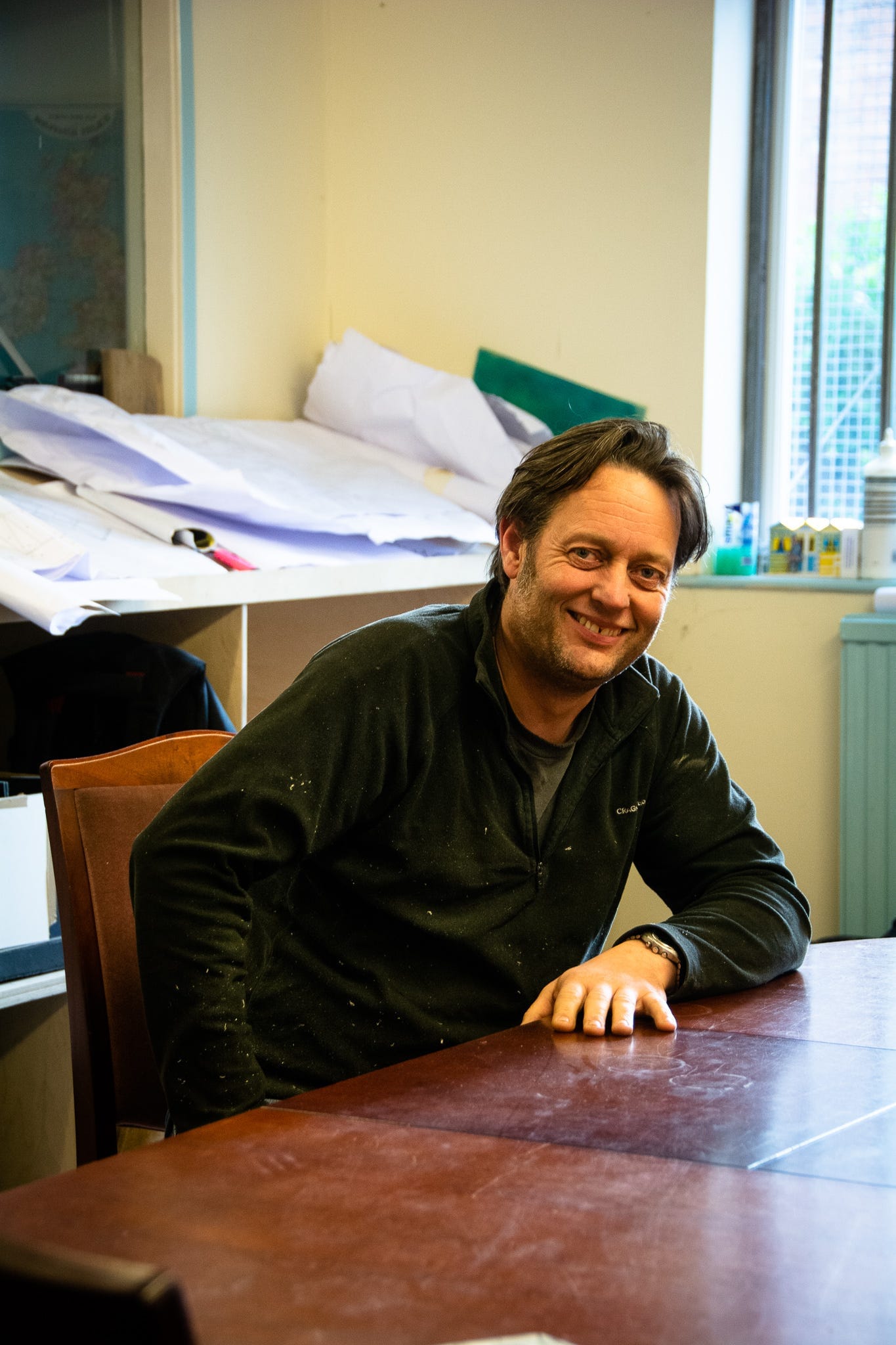 Alec Graham in the meeting room of his company’s workshop. Photograph by Dani Cole.