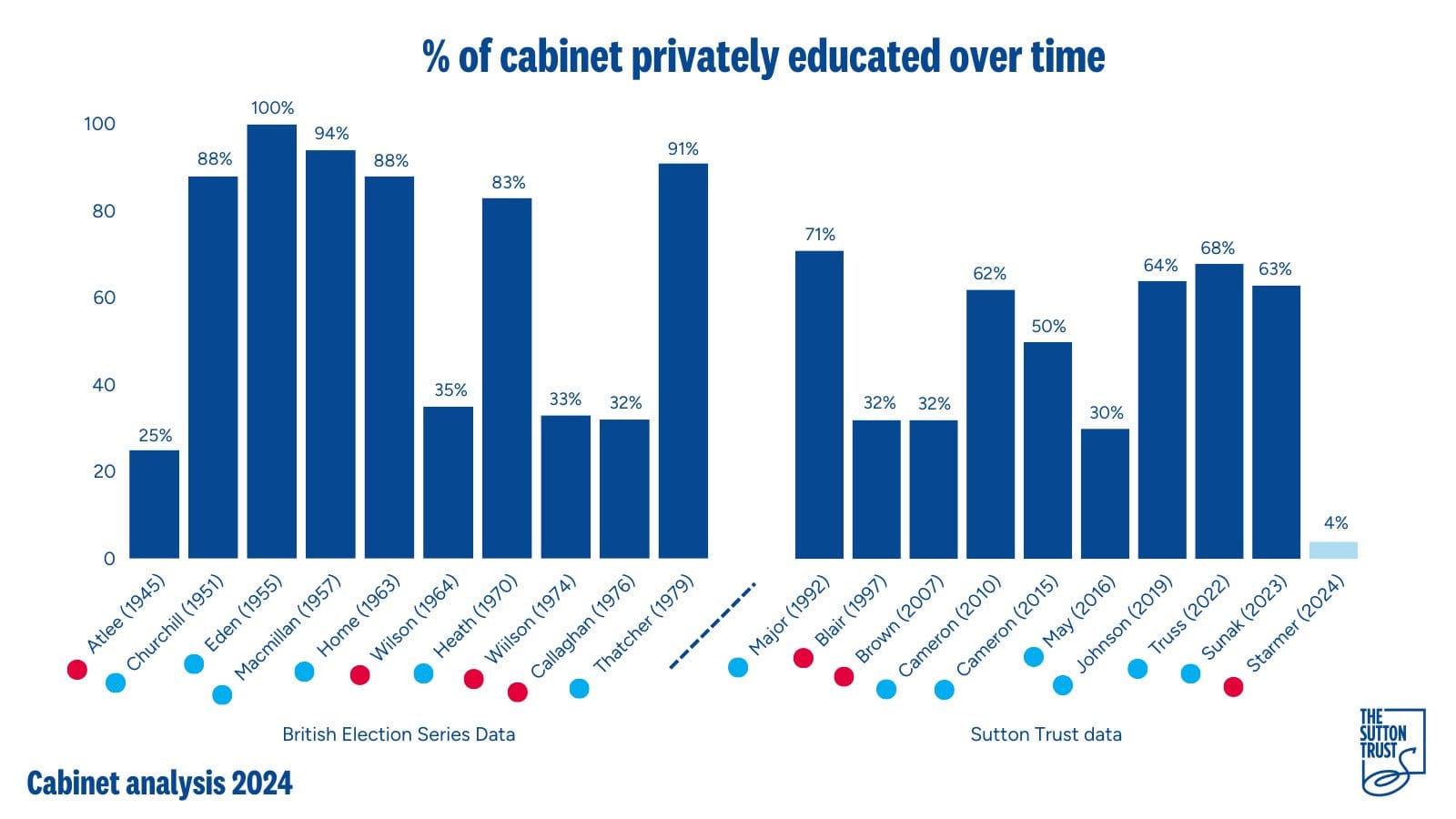 According to The Sutton Trust, just 4% of Keir Starmer’s cabinet were privately educated, compared to 63% in Rishi Sunak’s cabinet. 93% were educated at comprehensive schools, making this “the most diverse cabinet” ever recorded, in terms of educational background. It’s perhaps no coincidence that Starmer’s Labour Party have been willing to put forward proposals to end a VAT exemption for private schools.