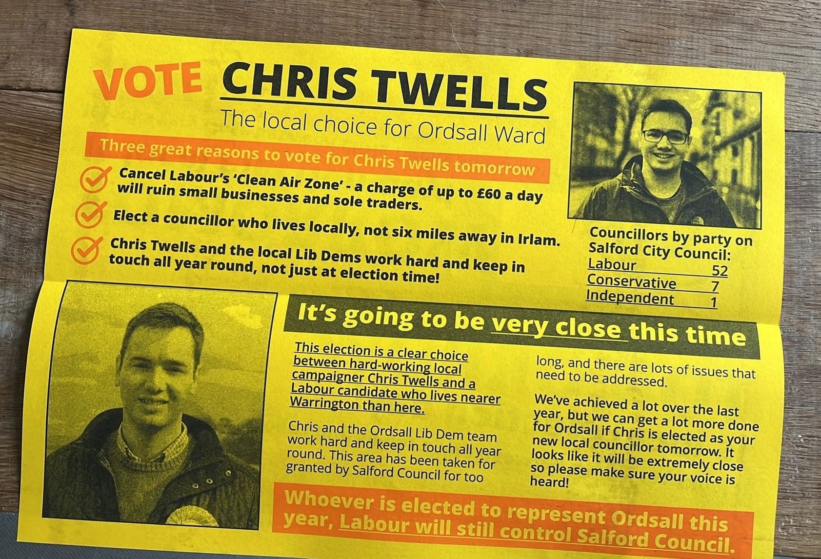 Meanwhile, Chris Twells, the Ordsall Lib Dem councillor best known for his slogan “the local choice for Ordsall Ward”, who encouraged voters to back him because he was a “councillor who lives locally, not six miles away in Irlam”, has been discovered to be living in the Cotswolds… Got any great local elections gossip? Hit up mollie@manchestermill.co.uk.